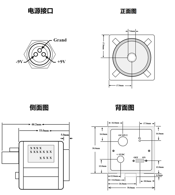 PDAM20A6B4G-InGaAS光电探测器是一种额定带宽,固定增益的光电探测器,用于检测光信号。光信号从光电sensor感应面输入,输出通过BNC以电压形式输出。本产品能测量800nm到1700nm波长范围的光信号。具体性能参数数据参考附录表格。LD-PD光电探测器外壳带有英制1/4"-20螺纹的安装孔,可以方便的安装固定。 外壳部分还附带两种不同尺寸的螺纹接圈,这两种螺纹接圈分别适合于工业应用和科研应用,可以方便适配外部光学部件,如滤光片,衰减片,镜头,FC光纤转接盘等。该产品包含一个塑料防尘盖。具体安装请参考阅读第三章节。 每个光电探测器都配有一个输出±9V的直流线性电源,该直流电源的输入额定电压为220VAC/50HZ。