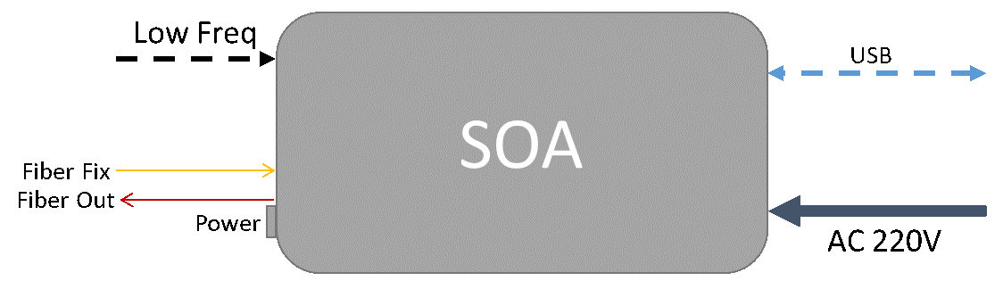 Low Freq:SOA外部电流调制输入端,支持0~40MHz的频率信号,Min. 信号脉宽10 ns。