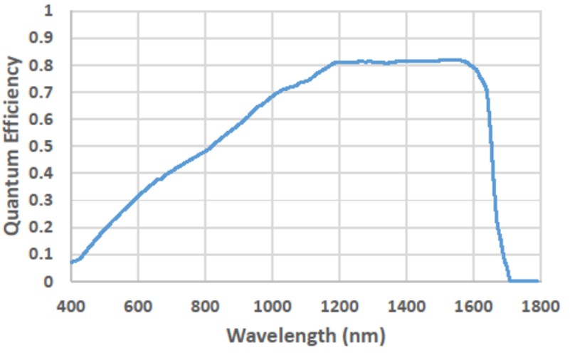 量子效率 | electron/photon | 0.75 at 1.5 µm | 详见下面的 QE曲线 | ||