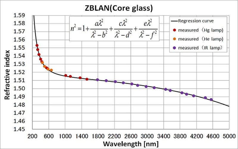 ZBLAN玻璃的折射率(芯,典型)
