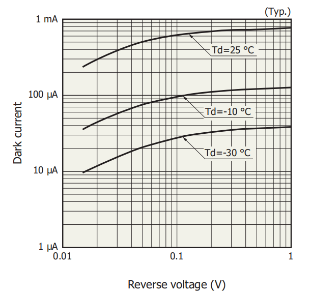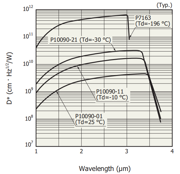 峰值探测率D*(λp, 600, 1) | 典型值:4.5 × 109(cm·Hz1/2/W) Min. 值:3.0 × 109(cm·Hz1/2/W) |