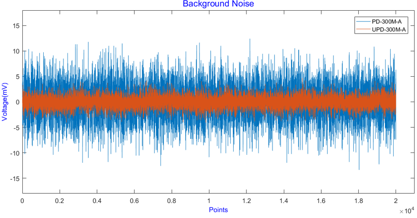 超低噪声光电单元探测模块集成了超低噪声模拟PIN探测器、低噪声宽带跨阻放大器以及超低噪声隔离电源单电源供电,输出信号不受外部供电电源的影响。该模块在本底噪声控制方面尤为突出, 在相同参数下其本底噪声约为常规模块的三分之一,很好满足客户对更小信号探测以及更高信噪比的需求。