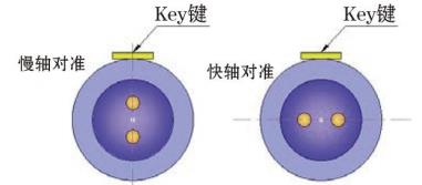 在制作保偏器件连接头时,猫眼的连接轴线方向和键槽垂直方向,也称为慢轴对准,反之为快轴对准。 如图所示,