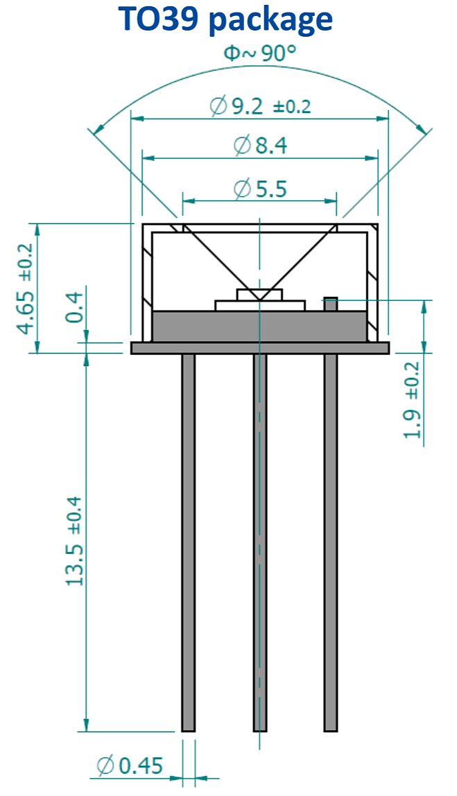 | PVAS-5-0.1×0.1-TO39-NW-90 | 无 | 无 | 6.2±0.2 | 4.2±0.3 | ~1.2×10 | ~11ns |