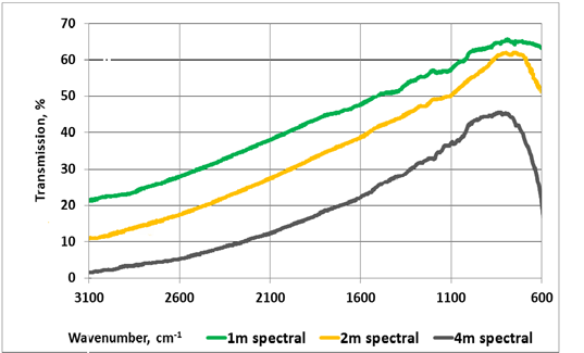 不同长度多晶光纤的透射光谱(光谱质量等级)