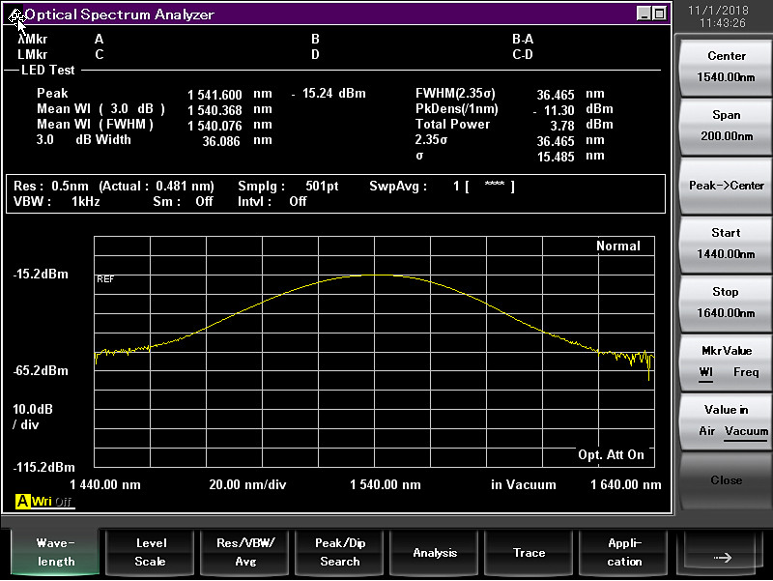 SOA放大器光谱图(引脚=0dBm,I=450mA)