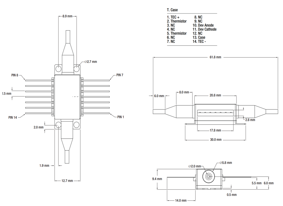 工作波长:C波段1528 nm-1562nm 中心波长:1550nm 输出功率:14dBm 输出光纤:SMF28e 接口类型:FC/APC
