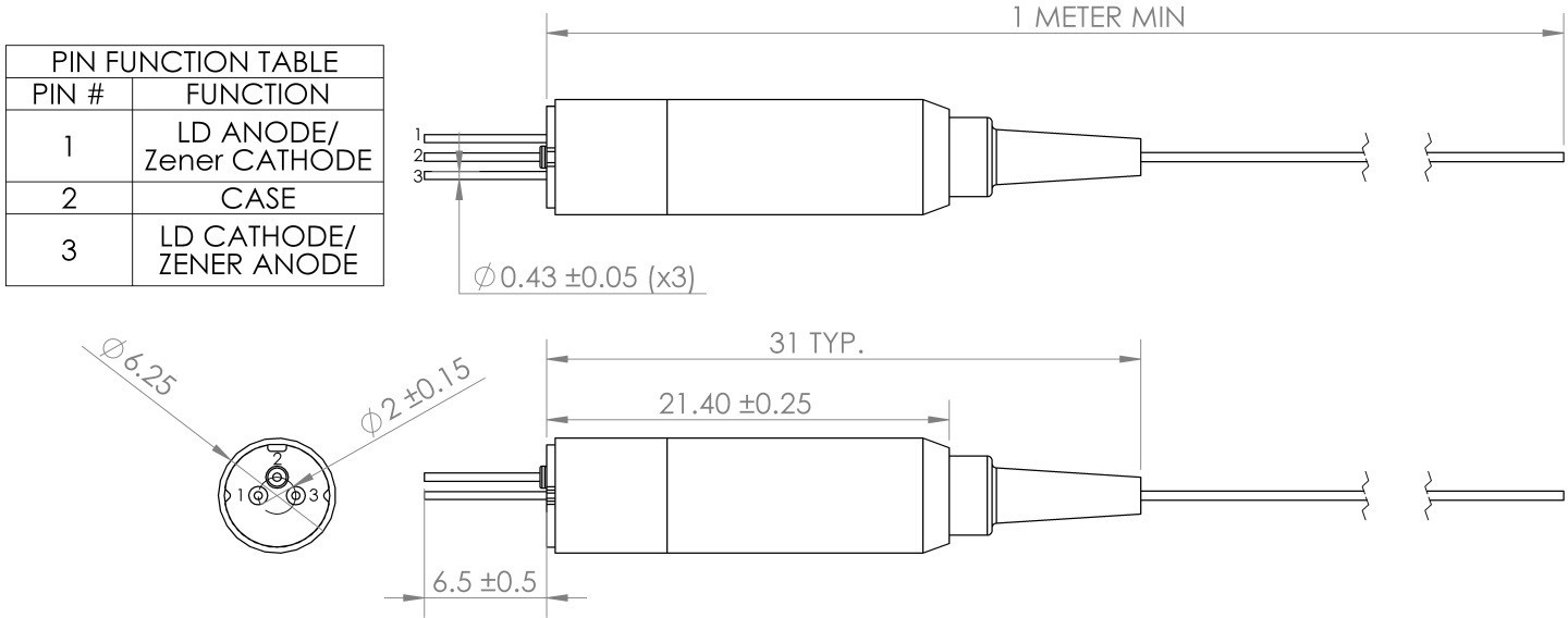 峰值光功率(光纤除外) | Po | If = 2000 mA; Pw = 1 us; D/C = .01% | 2 | W | ||