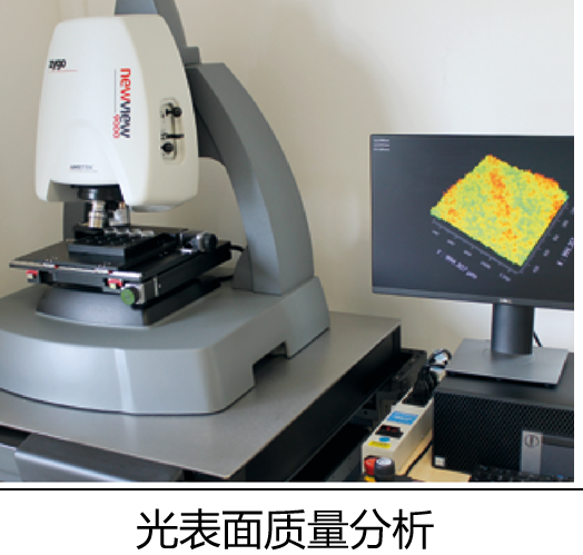 用于检查程序的测量设备,例如白光轮廓仪和高分辨率显微镜(高达 x 1000)已经到位。定制的腔衰荡设置允许以最多四位小数的精度确定反射并参考损耗。