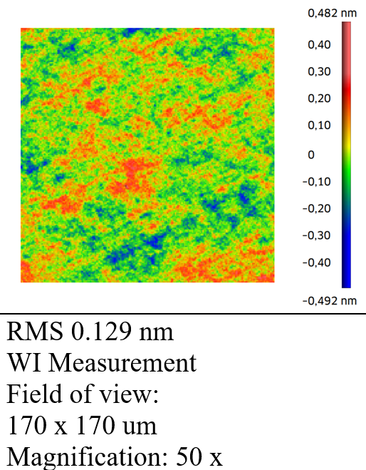 结果已通过我们的内部腔衰荡设置和散射测量得到证实。对于上述值,使用表面粗糙度 < 1 Å rms 的超抛光基板是必要的。用白光轮廓仪检查它们的质量。下面是一些测量值: