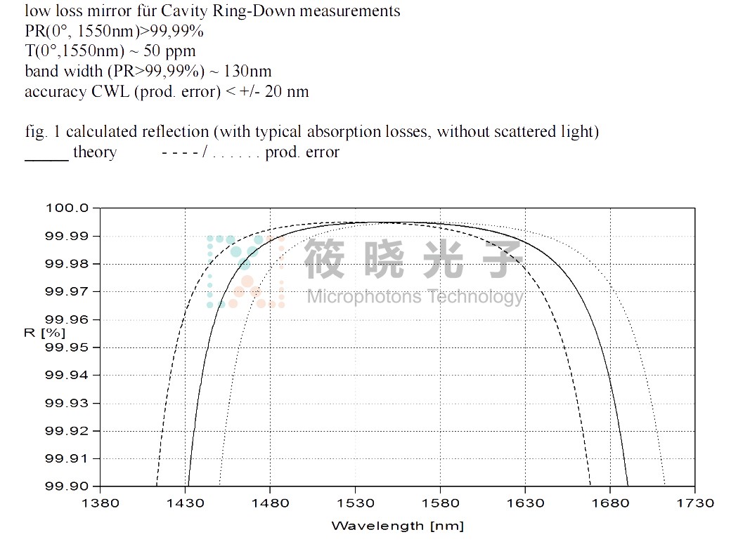 •非常高的反射率(在可见光和近红外光谱范围内R > 99.99%•R > 99.999% 在1000 – 1600 nm 之间的几个波长处得到证实)