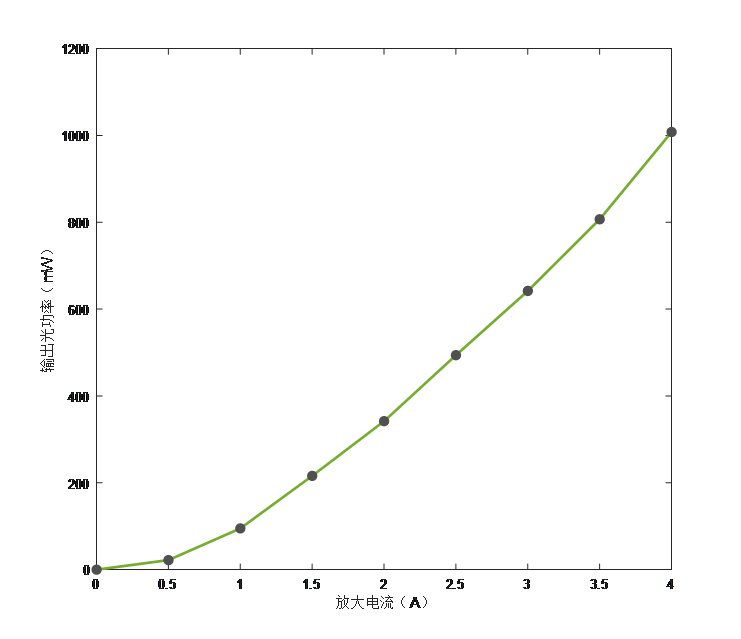 1,放大光功率-电流图(种子光为1mW):
