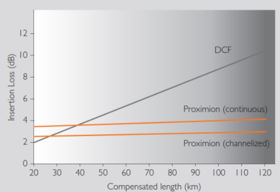 Proximion的产品可以承受高光功率,而不会受到非线性效应造成的惩罚。非线性效应没有被引入,即使在最高功率水平遍及的任何传统网络。因此,这些产品是未来引入更高比特率和通道数的证明,这比传统的基于DCF的解决方案更有优势。