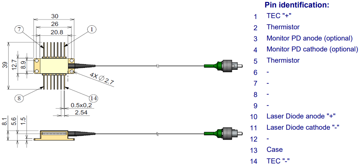 带有 PM 光纤的激光模块提供通常 >18dB 的偏振消光比 (PER)。光纤耦合激光二极管可配置为以 CW(高达 600mW)或脉冲模式运行,并且可选择配备光纤布拉格光栅 (FBG) 以实现光谱稳定。