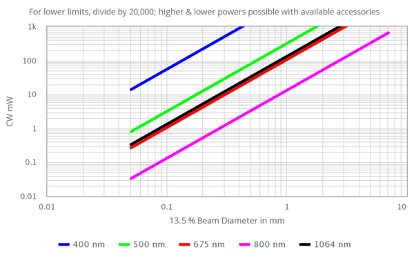 WinCamD, BladeCam, TaperCamD系列光束分析仪的饱和功率限制