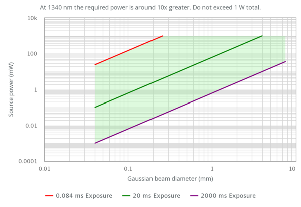 WinCamD-LCM-TEL 光束分析仪在1550nm处的工作范围(无衰减器)