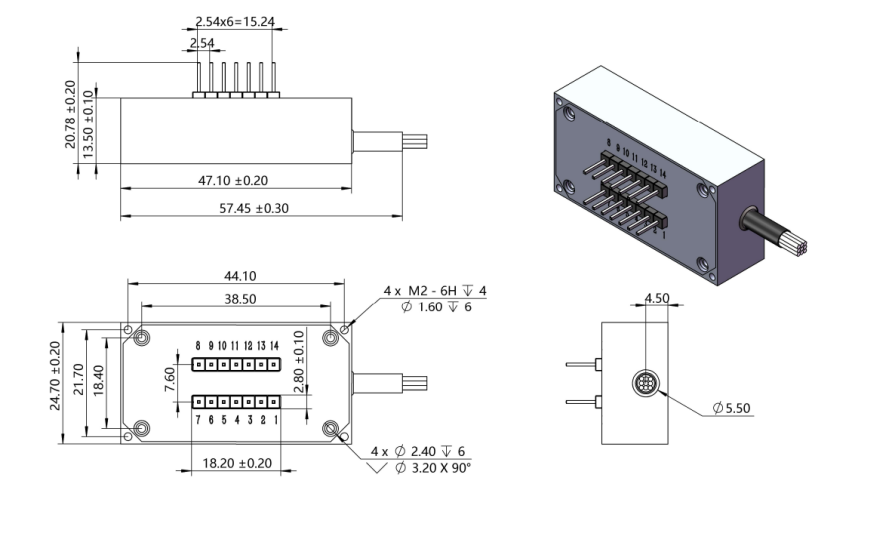 14PIN 模块有 6 个 TTL 控制脚(D0~D5),可控制多达 64 个通道。