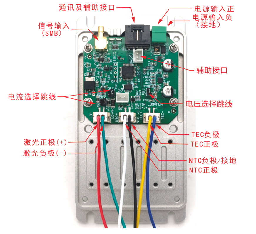 P+,P-为辅助连接口,内部接头可用于直连激光器引脚。