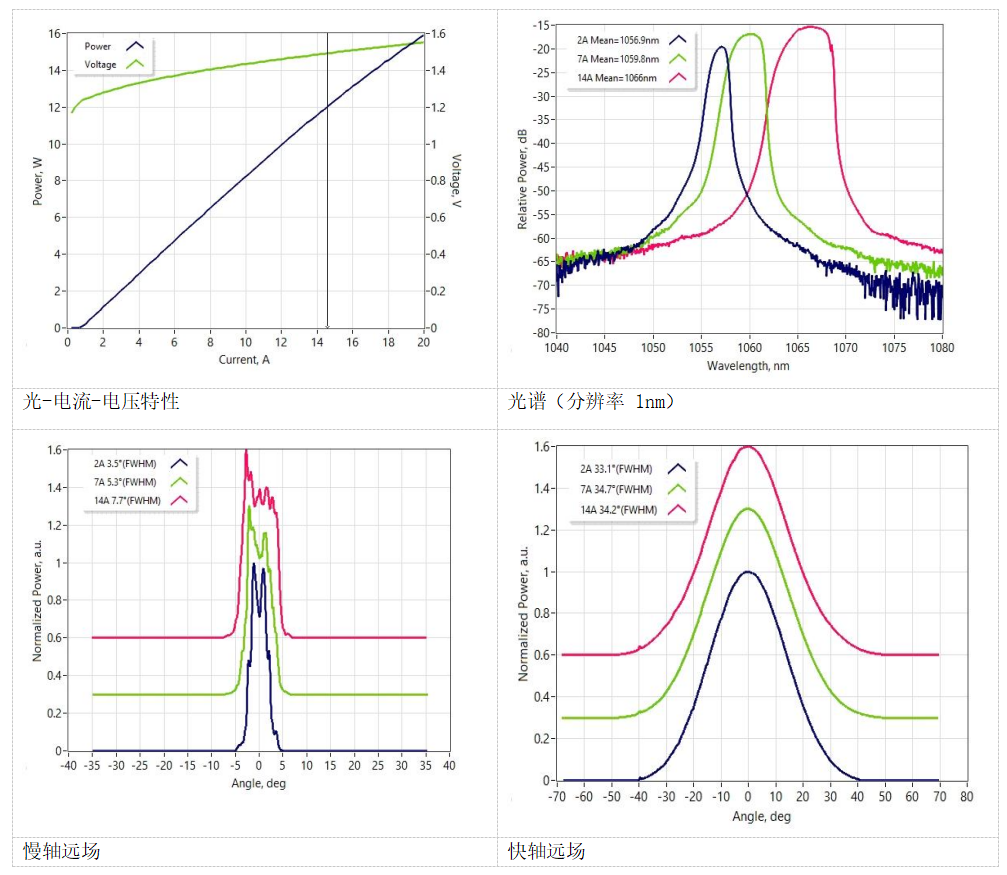 特性(每个样品均@ CW、25C、14A 条件下进行测试)