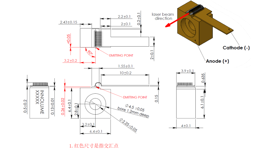 该设备是开放式散热器二极管激光器;它只能在洁净室环境或防尘外壳中操作。必须控制工作温度和相对湿度,以避免激光面上出现水凝结。必须避免激光面受到任何污染或接触。