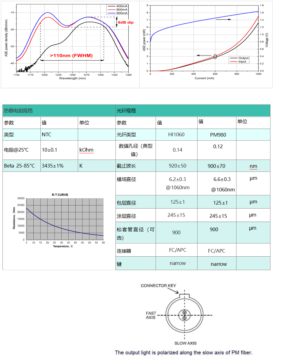 • 保偏 PM980 光纤或 HI1060 光纤