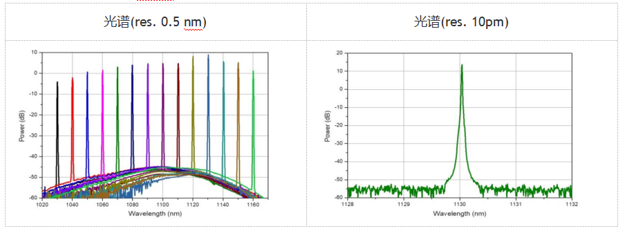 波长(最大功率处):1130nm; 中心波长:1105nm; 调谐范围:130nm; 最大输出功率:200mW; 正向电流:400mA; 慢轴光束发散角:9deg; 快轴光束发散角:38deg;