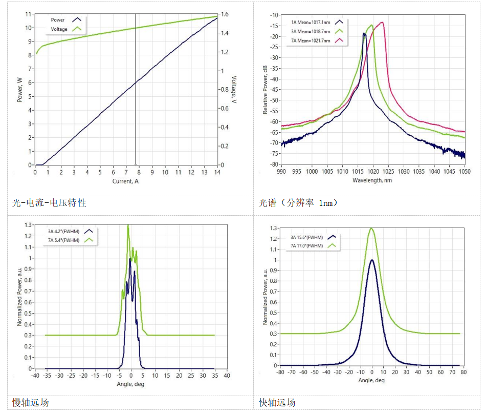 宽区域激光器,输出功率为 8W,平均波长为 1064nm,带宽为 4nm,台面宽度为 130um