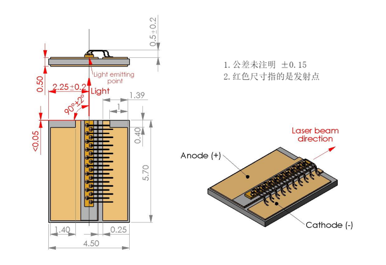 1064nm高功率宽区域激光二极管(15W)