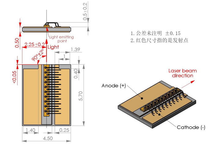 1064nm高功率宽区域激光二极管(15W)