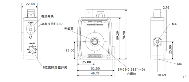 放大型探测器,8档可调增益,定量光电转换