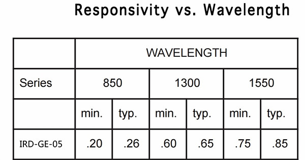 NEP, Typical (1550 nm) | 4.0 x 10-12 W/Hz1/2 (Typ.) |