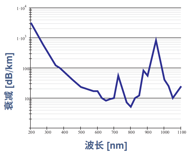● 在 180 纳米至 300 纳米范围内,透过率高于塑包石英光纤