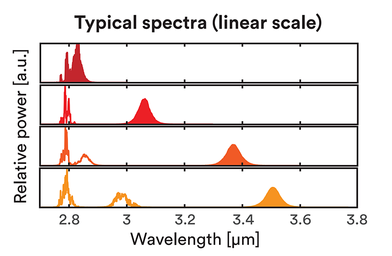 Shou个大于3um的商业的超快中红外光纤激光器。紧凑,即插即用的激光系统,调谐范围3-3.4um,自起动锁模,集成超快探测器用于监测,脉宽<500 fs,平均功率可达100mW,单模输出。