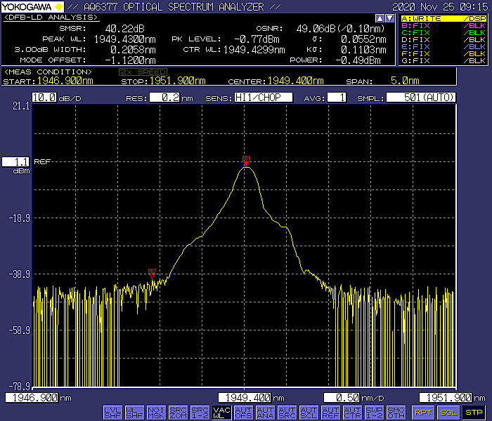 1. 2um TDFA的光谱图