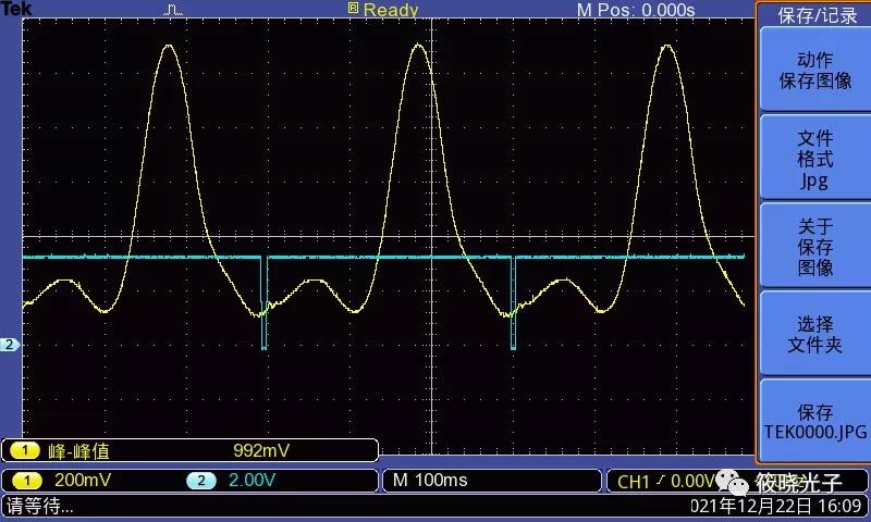 7、 调节软件参数,在示波器上观察二次谐波信号波形、幅值等信息。