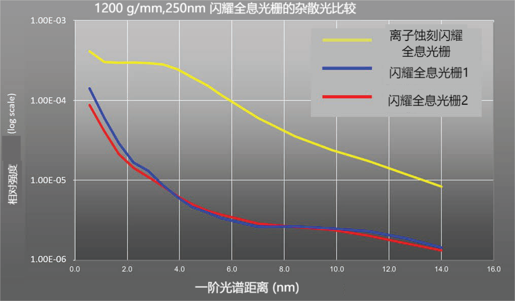 闪耀全息光栅提供与闪耀刻纹光栅相似的高效率,但杂散光显着降低且无重影。