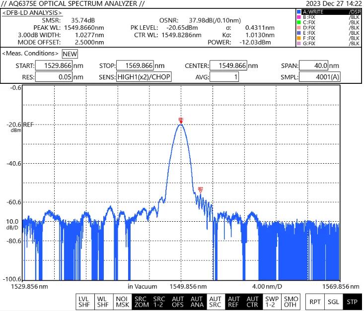 无输入电压下1550nm光谱图