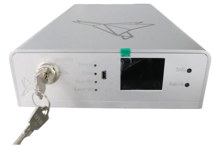 给控制器插上钥匙,接通电源后,控制器显示屏开始显示。此时可以使用钥匙控制激光器,钥匙共有三个档位OFF、Standby、ON,使用十分方便。