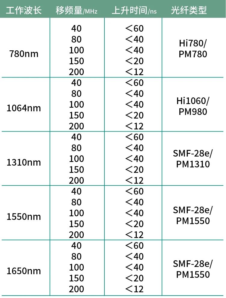304永利集团的声光调制器可以提供的规格如下,欢迎来电咨询:
