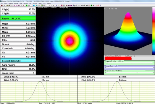 光束椭圆度 | 长轴,短轴和平均值. 轴的自动定向. |