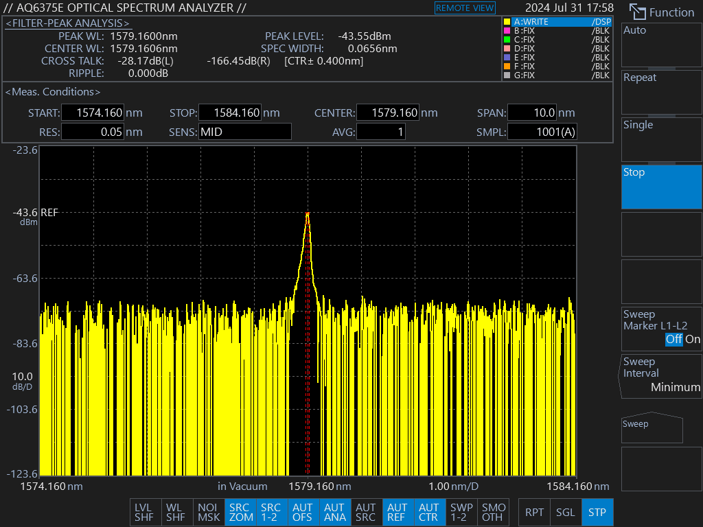 自由光谱范围 FSR(THz / nm) | 10THz / 80nm | 1.5THz / 12nm | 0.3THz / 2.4nm |
