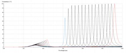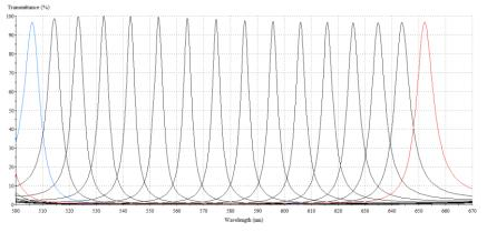 光谱范围:700-950nm,阶梯线扫描布局,半波长2-6nm。频谱设计信息如下: