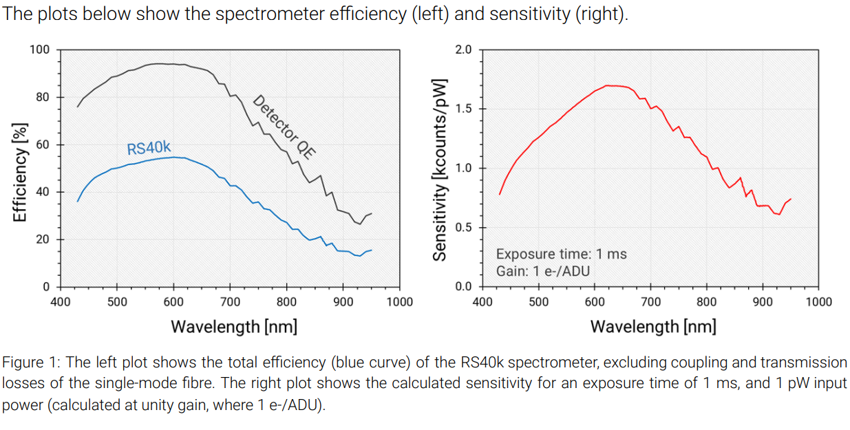 下图显示了光谱仪效率(左)和灵敏度(右)