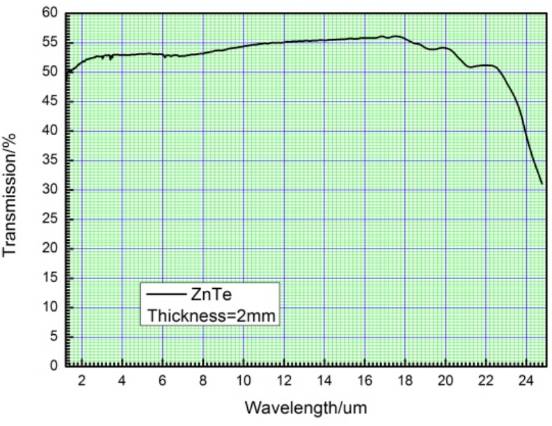 碲化锌(ZnTe)晶体,是一种具有优异电光性能的II-VI族化合物半导体,自然条件下是闪锌矿(ZB)结构,室温下带隙宽度为2.3eV,其二阶非线性系数与电光系数均较大,辐射和探测THz电磁波的效率比其他电光晶体高,因此ZnTe晶体被认为是比较好的THz辐射源和探测器材料。ZnTe晶体<110>方向在 800nm附近激光脉冲作用下相位匹配*****,为ZnTe晶体作为太赫兹辐射产生和探测的常规使用方向。此外,ZnTe晶体还可以广泛应用于各种光电子器件中,如绿光发光二极管、电光探测器、太阳能电池等