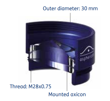 已安装的锥透镜 外径:30mm 螺纹M28x0.75