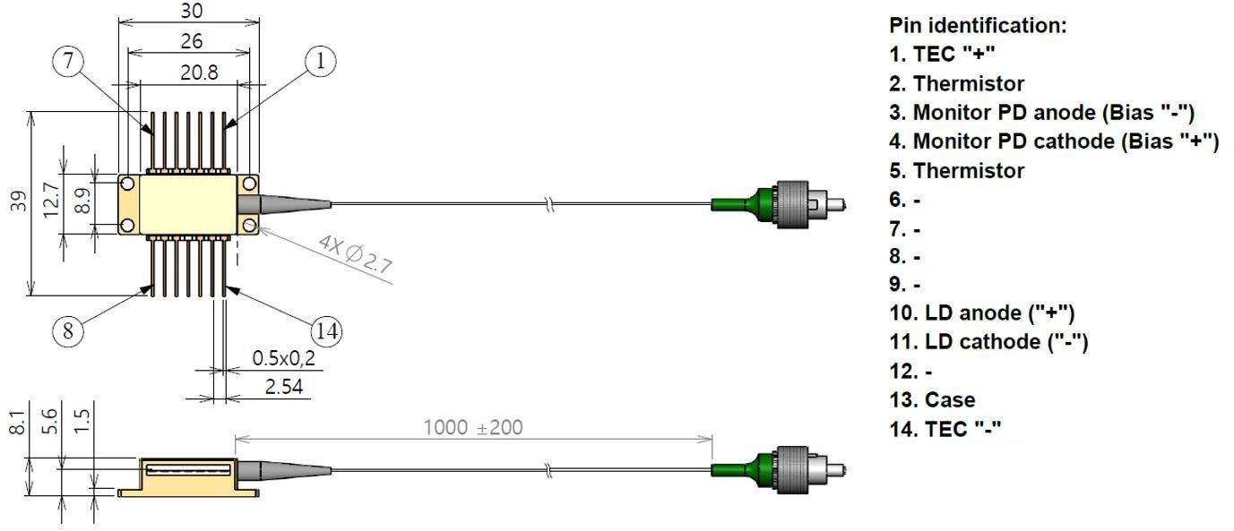 SML1100003PM001PFLXX -> 1100nm 平均波长下1000mW 脉冲输出功率,PM-980 光纤,带内置监控光电二极管和光纤松套管