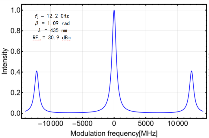 EO: "电光调制器" | P:相位调制器 | R:共振 | 12:12.2GHz | B:400-800nm | |