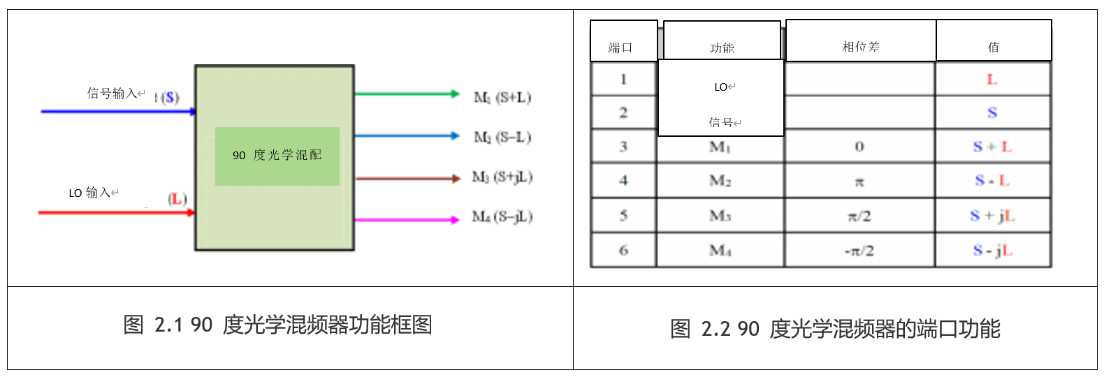 90度光学混频器的光学性能与前面章节描述的相同,只是输出准直器被单端光电探测器取代。