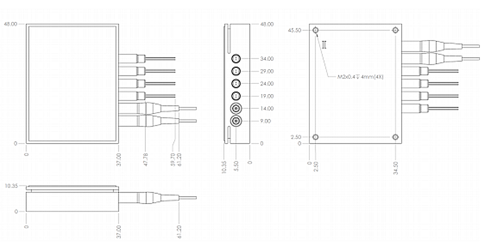 图 3.3, 具有单端 PD 输出的 90 度混合器的机械图纸