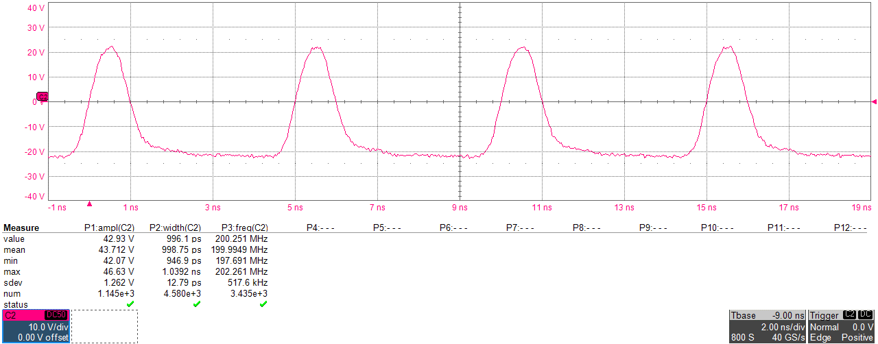 PG-1500系列能够生成高达50 Vpp的脉冲,脉冲宽度窄至1 ns,Max. 重复频率达400 MHz。